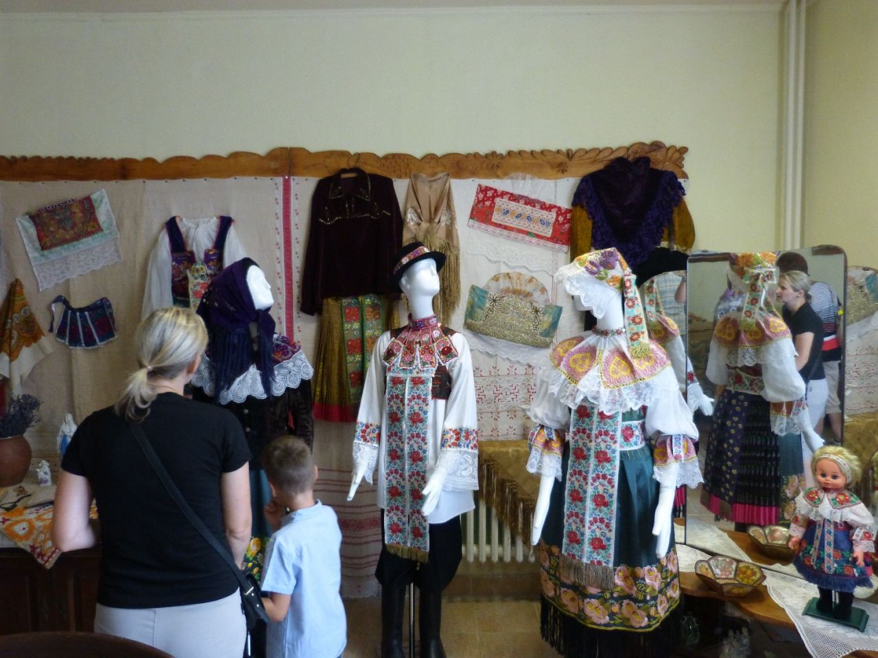 Najhodnotnejšími a najkrajšími vzormi sú oblečené štyri figuríny do odevov – krojov, ktoré boli kedysi pýchou Jablonice: žena oblečená v pracovnom letnom kroji, žena oblečená v zimnom kroji, žena oblečená vo sviatočnom kroji a muž taktiež oblečený vo sviatočnom kroji. Dnes už nosenie takéhoto odevu v obce bežne nevidíme.